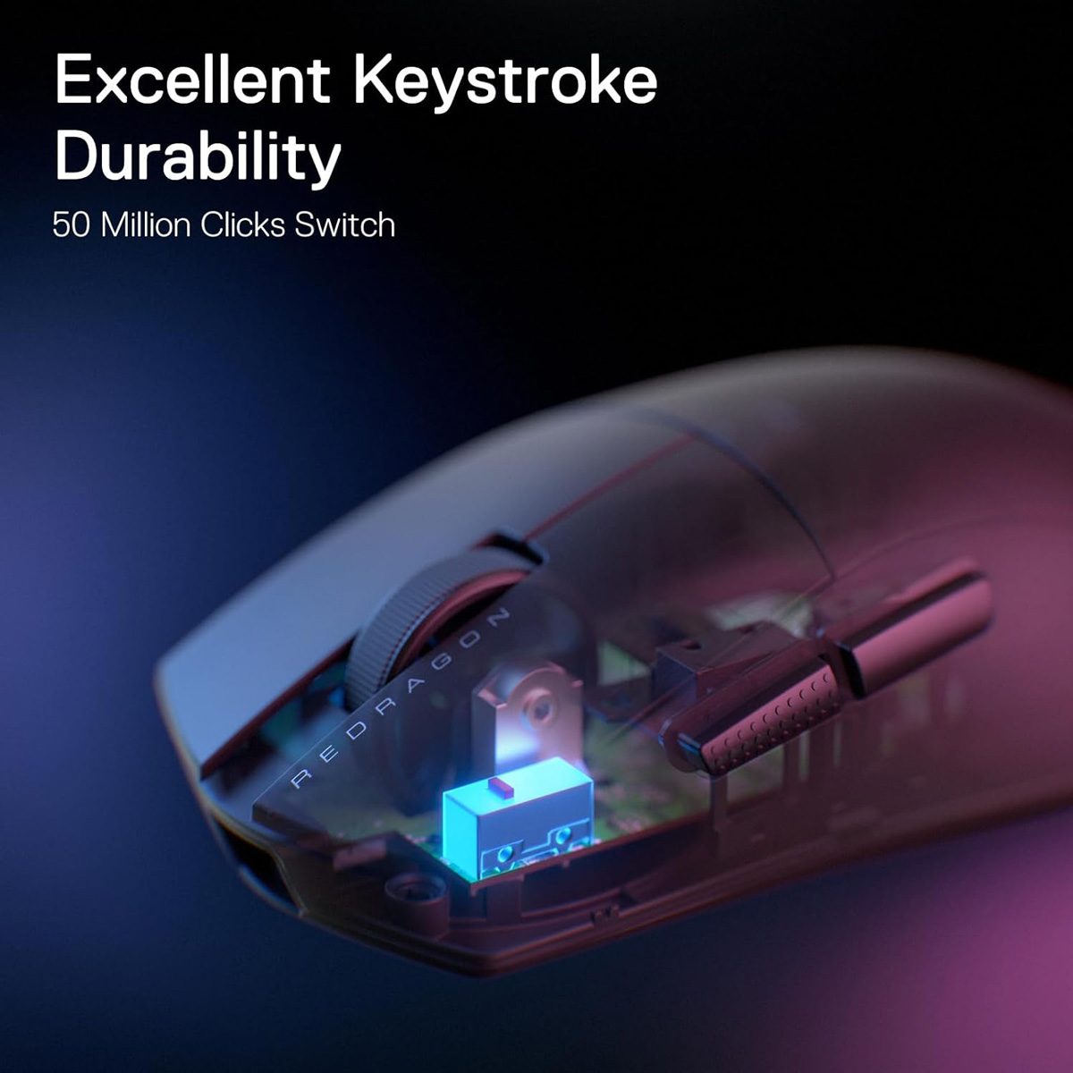 5-Level DPI Precision: Switch on the fly between 1200–12400 DPI; customize via software down to 200 DPI. Ultra Lightweight Build: At just 42g, it’s Redragon’s lightest mouse for effortless speed and control. Programmable Buttons: 5 keys support full macro binding for games or productivity shortcuts. Ergonomic Comfort: Natural shape supports long gaming or work sessions with less fatigue. Advanced Driver Support: Customize DPI, macros, and lighting via Redragon software.