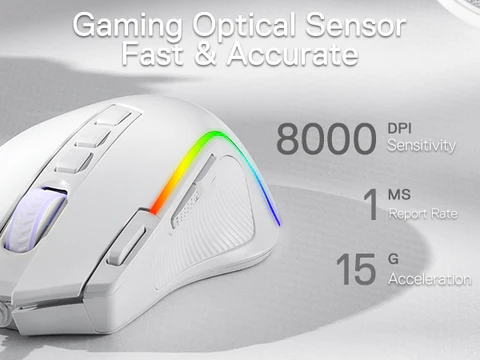 Pentakill, 5 DPI Levels - Geared with 5 redefinable DPI levels (default as: 500/1000/2000/3000/4000), easy to switch between different game needs. Dedicated demand of DPI options between 500-8000 is also available to be processed by software. Any Button is Reassignable - 11 programmable buttons are all editable with customizable tactical keybinds in whatever game or work you are engaging. 1 rapid fire + 2 side macro buttons offer you a better gaming and working experience. Comfort Grip with Details - The skin-friendly frosted coating is the main comfort grip of the mouse surface, which offers you the most enjoyable fingerprints-free tactility. The left side equipped with ubber texture strengthen the friction and made the mouse easier to be controlled. 5 Decent Backlit Modes - Turn the backlit on and make some kills in your gaming battlefield. The hyped dynamic RGB backlit vibe will never let you down when decorating your gaming space, it would be better with other Redragon accessories with lights on. Fatigue Killer with Ergonomic Design - Solid frame with a streamlined and general claw-grip design offers each gamer a satisfying and comfortable gaming experience with less fatigue even though after hours of use.