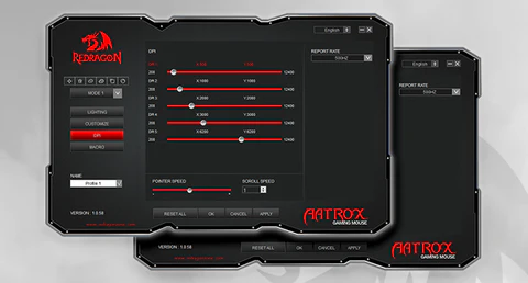 Geared with 5 redefinable DPI levels (default as: 500/1000/2000/3000/6200), easy to switch between different game needs. Dedicated demand of DPI options between 500-12400 is also available to be processed by software.